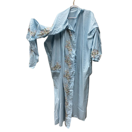 Button Up Abaya with Floral Embroidered Sleeves
