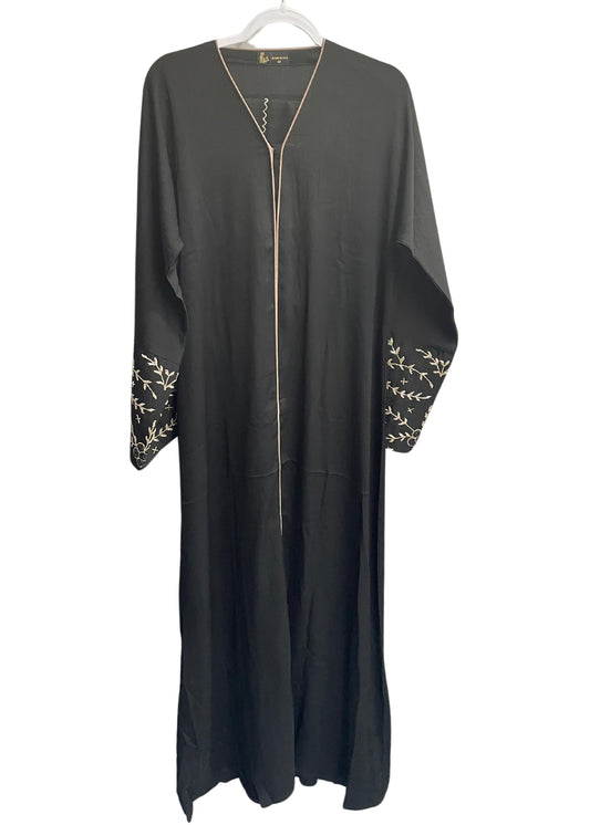 Beautiful Button Up Abaya with Floral Sleeve Sequins