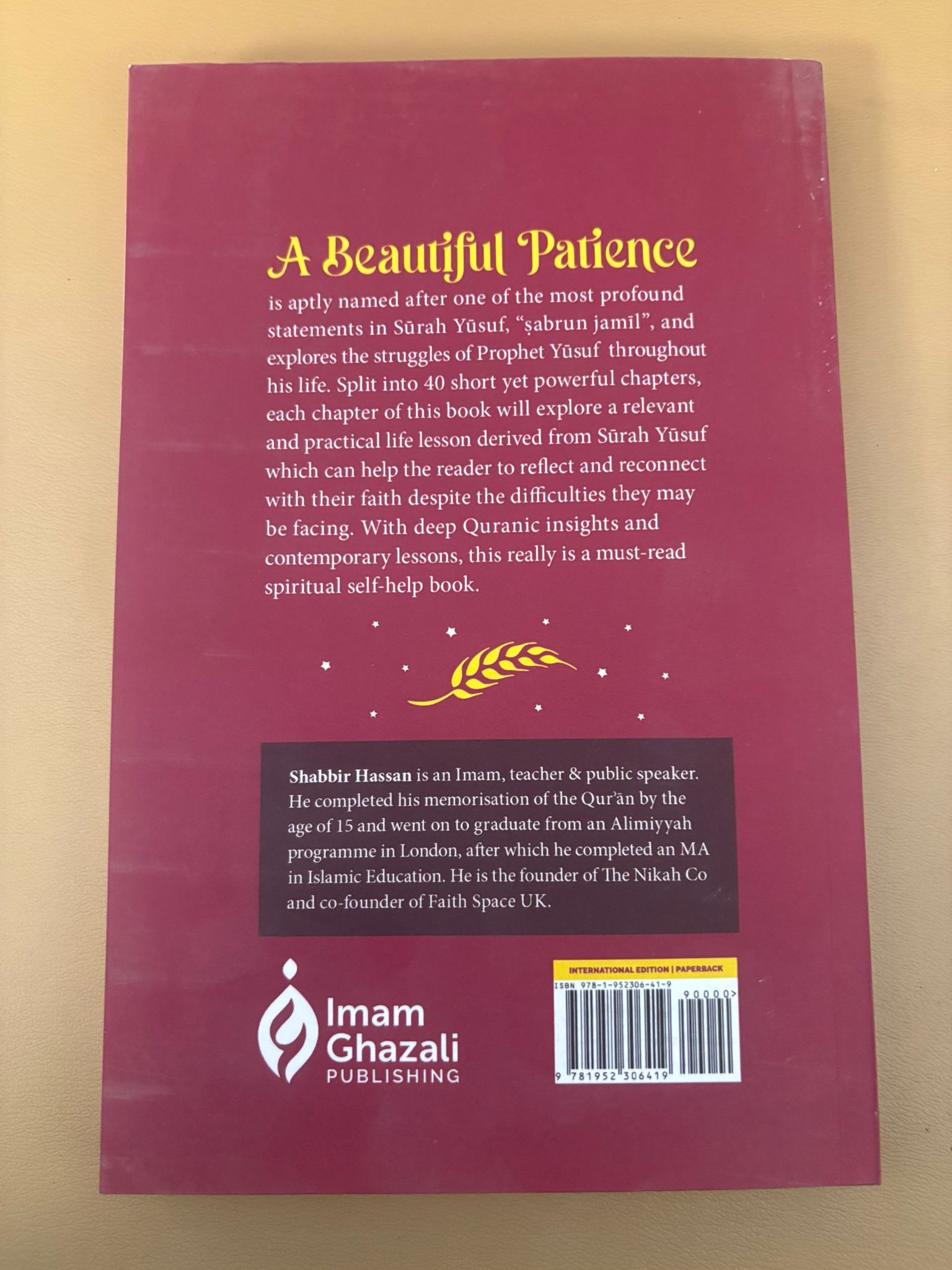 "A Beautiful Patience: 40 Life Lessons from Surah Yusuf" highlights key moral and spiritual lessons from the story of Prophet Yusuf (Joseph) in the Qur’an, focusing on patience, trust in Allah, and resilience through hardships. It offers practical guidance for everyday life.