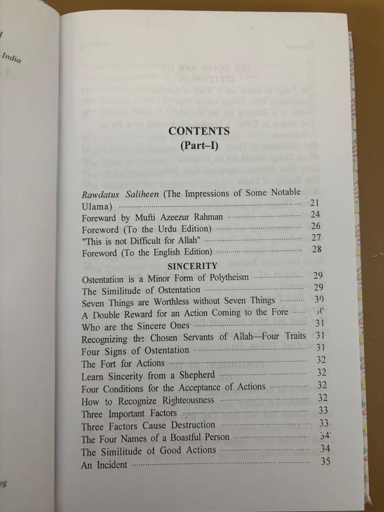 This book is actually a English translation of the book, "Tambeehul Ghaafileen" by Faqih Abu Laith Samarqandi (ra). Tambeehul Ghaafileen is made up of two parts and consists of pithy counsel. quotations from the Quran and Hadith, examples from lives of the Sahabah and their successors and the men of Allah. It has been well received by the Ulama and now its English translation is presented to the readers.