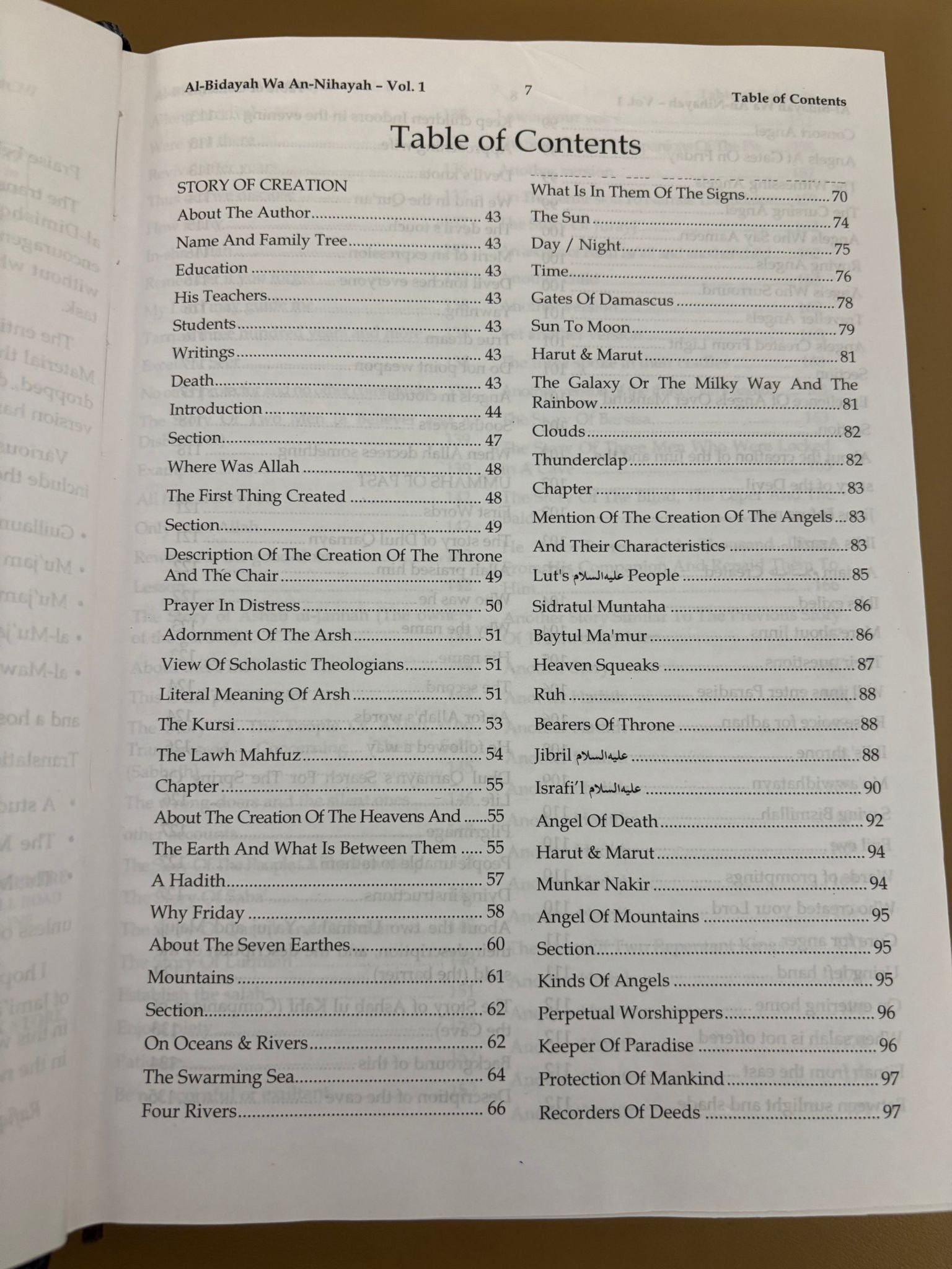 An abridged English translation of The Classical work Al-Bidayah wa ‘l-Nihayah (The Beginning and the End) or Tarikh ibn Kathir (The history [book of] Ibn Kathir), one of the most comprehensive sources of Islamic history.