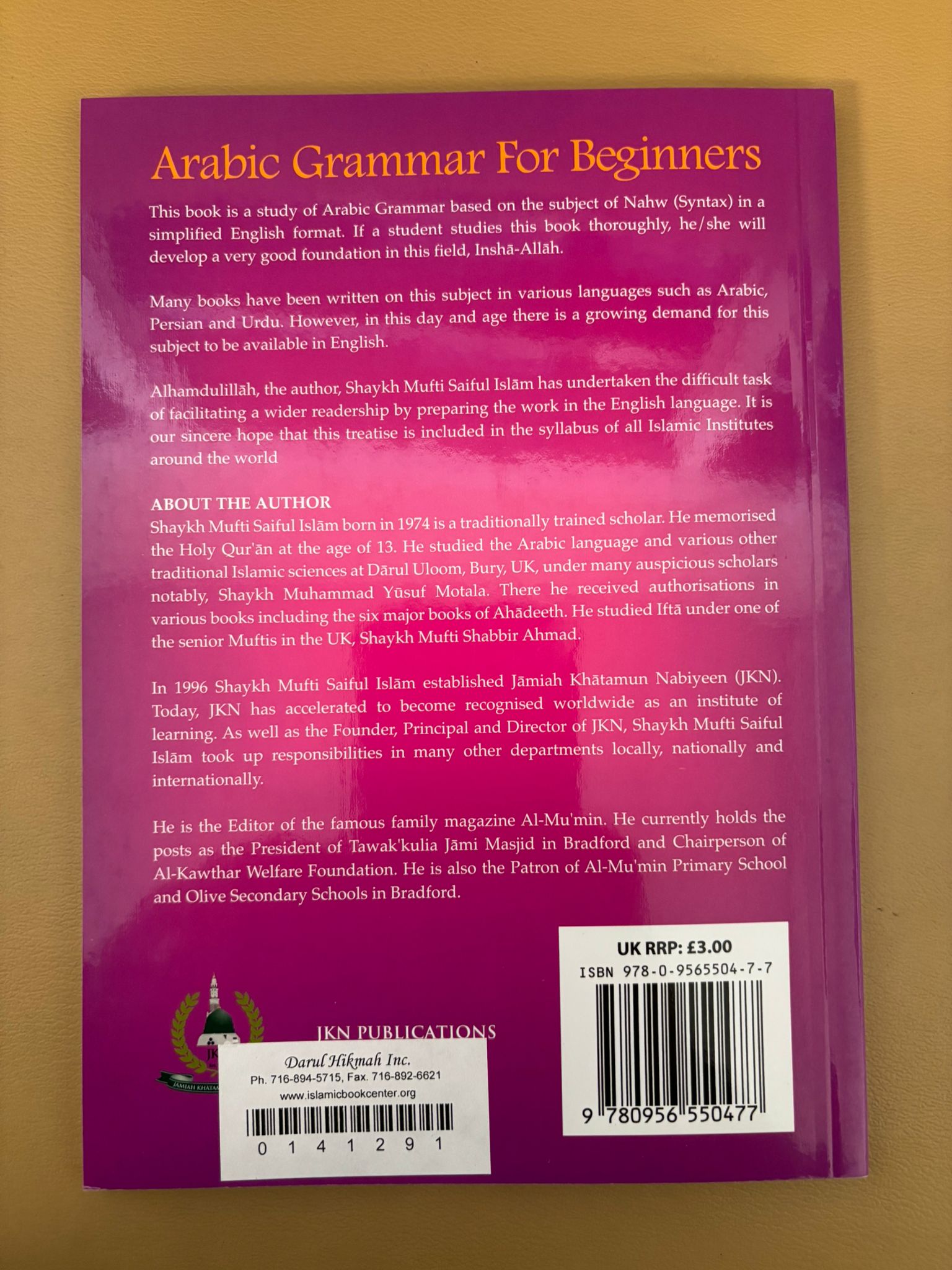 Arabic Grammar for Beginners is an introductory book on Nahw (Arabic syntax). It teaches how words are arranged in sentences, covering subjects, predicates, verbs, nouns, and sentence types. The focus is on understanding sentence structure to aid reading and comprehension of Classical Arabic, especially the Qur’an.