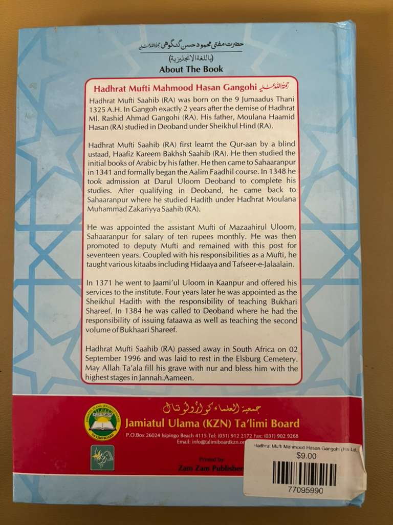 Through stories, reflections, and testimonials, the book offers valuable insight into Hadhrat Mufti Sahib’s humility, scholarship, piety, and unwavering commitment to Deen — making it a source of inspiration for students, scholars, and all seekers of knowledge.