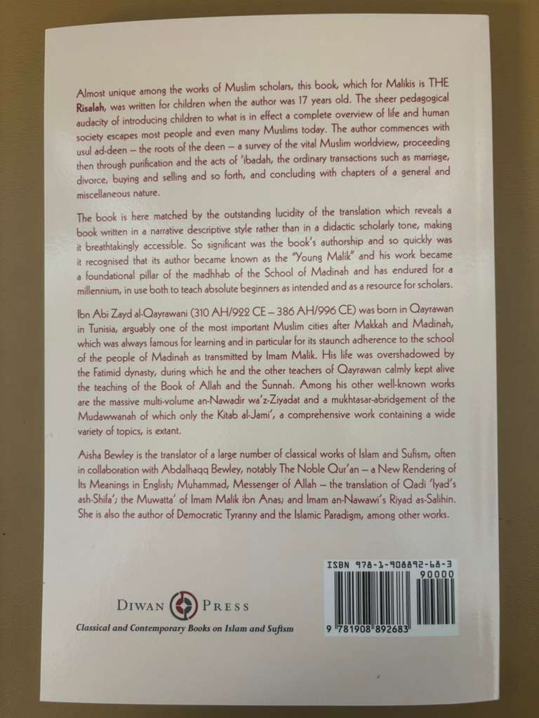 The Risalah (often referring to Al-Risalah fi Fiqh al-Imam Malik by Ibn Abi Zayd al-Qayrawani) is a foundational manual of Maliki Islamic law. It summarizes the essential beliefs, acts of worship, and legal rulings based on the Maliki school. Written in clear, concise language, it covers creed, purification, prayer, fasting, zakat, pilgrimage, and basic social dealings—serving as both a primer for students and a guide for practicing Muslims in the Maliki tradition.