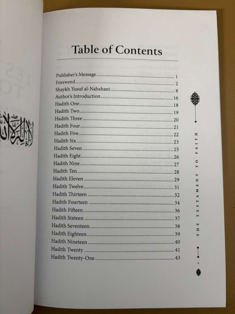 The Testament to Faith: Forty Hadith on the Virtues of La ilaha illa Allah is a concise religious work that gathers forty prophetic sayings focusing on the meaning, importance, and spiritual power of the declaration of Islamic monotheism. The book explains how this testimony shapes belief, purifies the heart, and guides a Muslim’s actions, emphasizing sincerity, faith, and reliance on God.